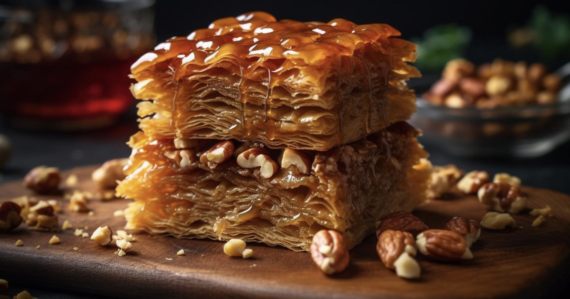 Baklava merupakan makanan penutup yang dibuat dengan adonan phyllo berlapis, diisi dengan kacang atau krim, dan ditambahkan sirup manis. Kudapan yang dipopulerkan pada era Kekaisaran Ottoman ini bahan utamanya berupa yufka atau lembaran adonan yang terbuat dari tepung terigu.