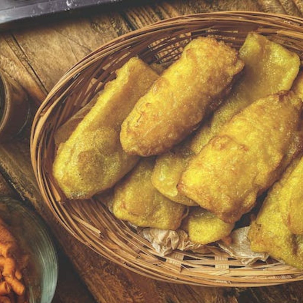 - Panaskan minyak, goreng di api sedang besar hingga kecokelatan, tiriskan.