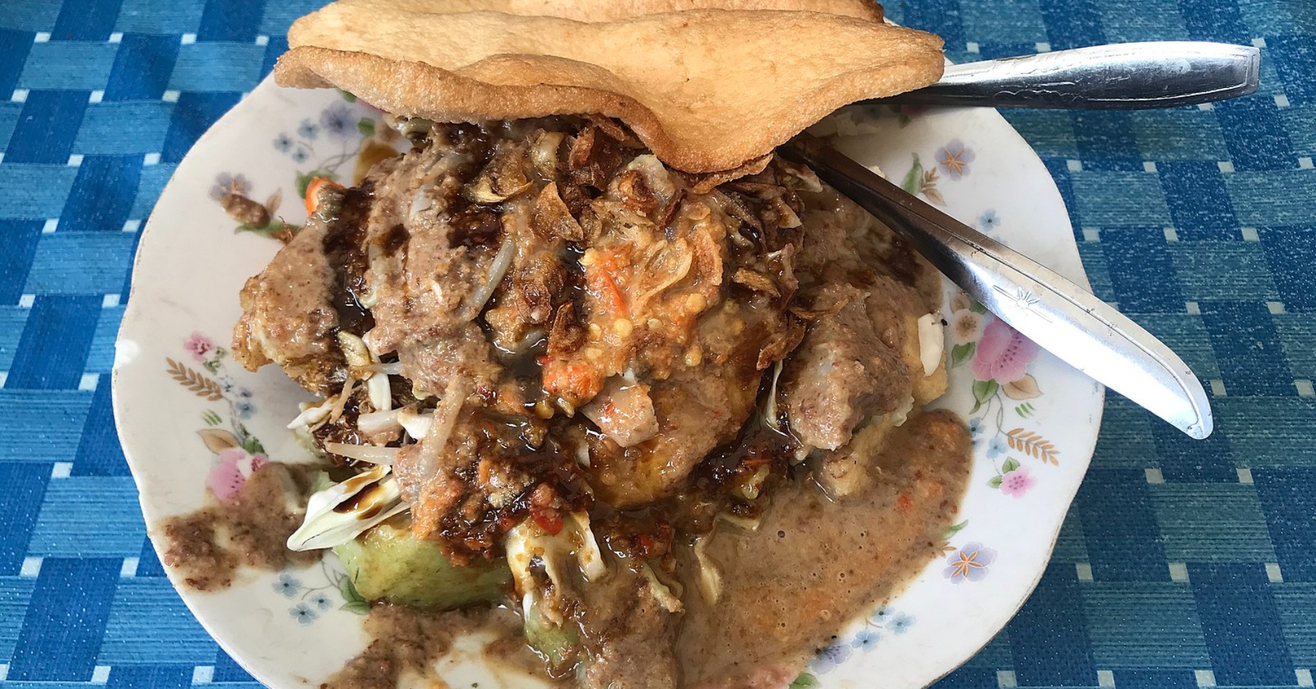 - Bumbu Kacang: haluskan cabai rawit, bawang putih, daun jeruk, garam, kacang tanah, dan gula merah