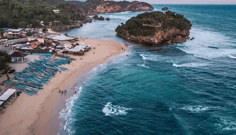Tak jauh dari hiruk pikuk wisata Gunungkidul, Yogyakarta, terselip sebuah pantai yang memesona dan belum banyak tersentuh—Pantai Drini. Dengan pasir putih yang lembut, air laut yang biru jernih, serta sebuah pulau karang kecil yang tampak kokoh di tengah laut, pantai ini menawarkan pengalaman liburan yang menenangkan sekaligus memukau. Dari puncak mercusuar yang berdiri di atas pulau karang, pemandangan laut selatan terbentang luas seperti lukisan alam yang hidup.