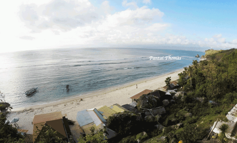 Terletak di Desa Pecatu, Kecamatan Kuta Selatan, Bali, Pantai Thomas adalah salah satu destinasi eksklusif yang sering terlewatkan wisatawan karena letaknya yang tersembunyi. Nama pantai ini diambil dari seorang turis asing bernama Thomas yang pertama kali ‘menemukannya’. Namun kini, pantai ini menjadi tempat favorit bagi mereka yang menginginkan ketenangan, keindahan, dan suasana khas Bali yang belum terlalu ramai oleh turis.