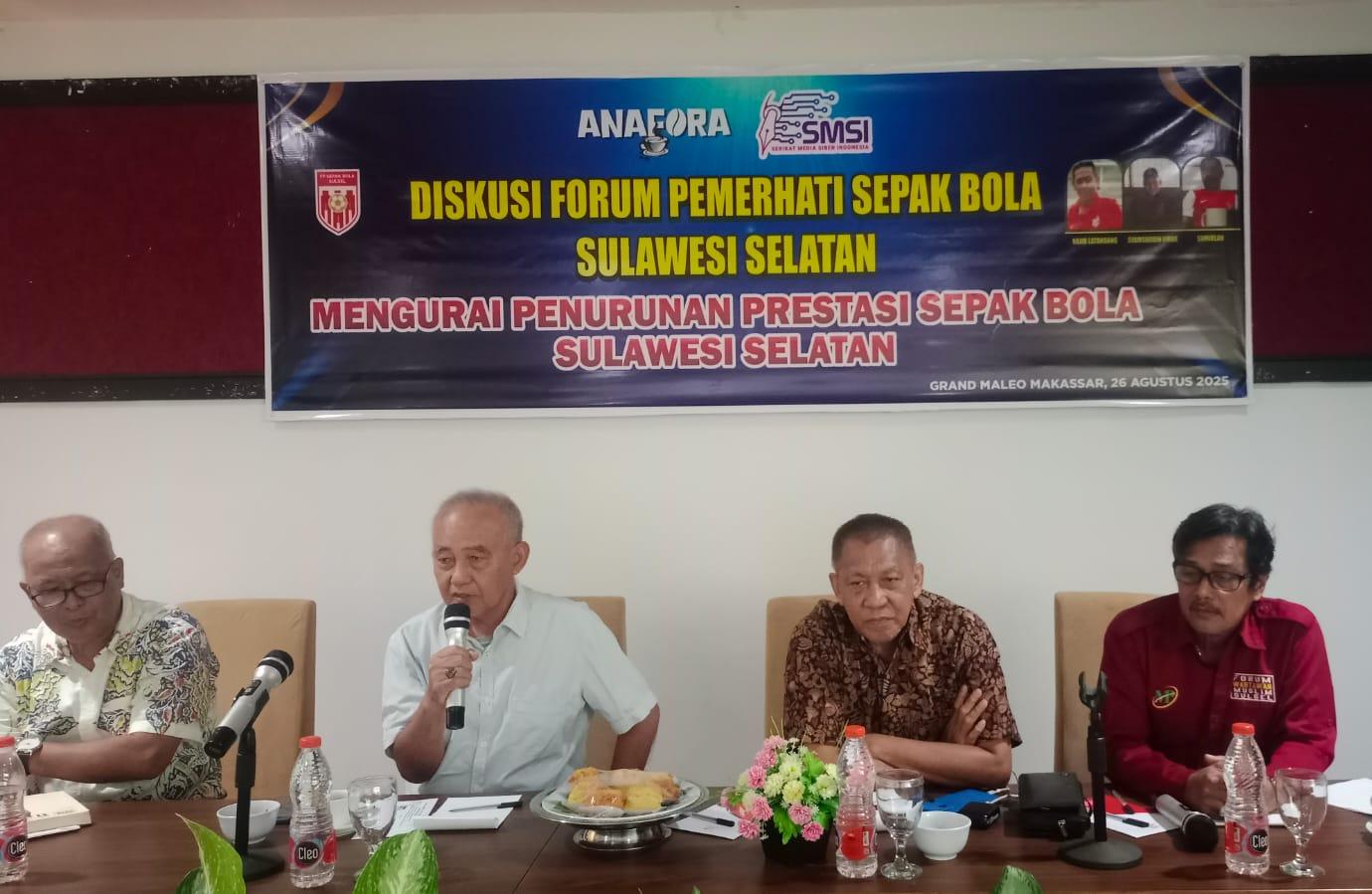 Forum Pemerhati Sepak Bola Sulawesi Selatan menggelar diskusi publik guna menjawab keresahan para legenda dan pencinta sepak bola terkait menurunnya prestasi daerah yang selama ini dikenal sebagai gudang pemain nasional.