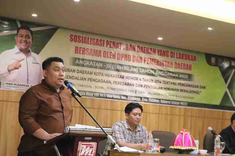 Sebagai bentuk edukasi publik dan penguatan regulasi, sosialisasi Peraturan Daerah (Perda) Kota Makassar Nomor 4 Tahun 2014 tentang Pengawasan dan Pengendalian Pengadaan, Peredaran, dan Penjualan Minuman Beralkohol kembali digelar oleh Anggota DPRD Kota Makassar, Imam Musakkar, S.Pd.I. Kegiatan ini merupakan Angkatan IX dan berlangsung di Ballroom Hotel Grand Maleo, Jalan Pelita Raya VIII, Kota Makassar, Senin (29/09/2025).