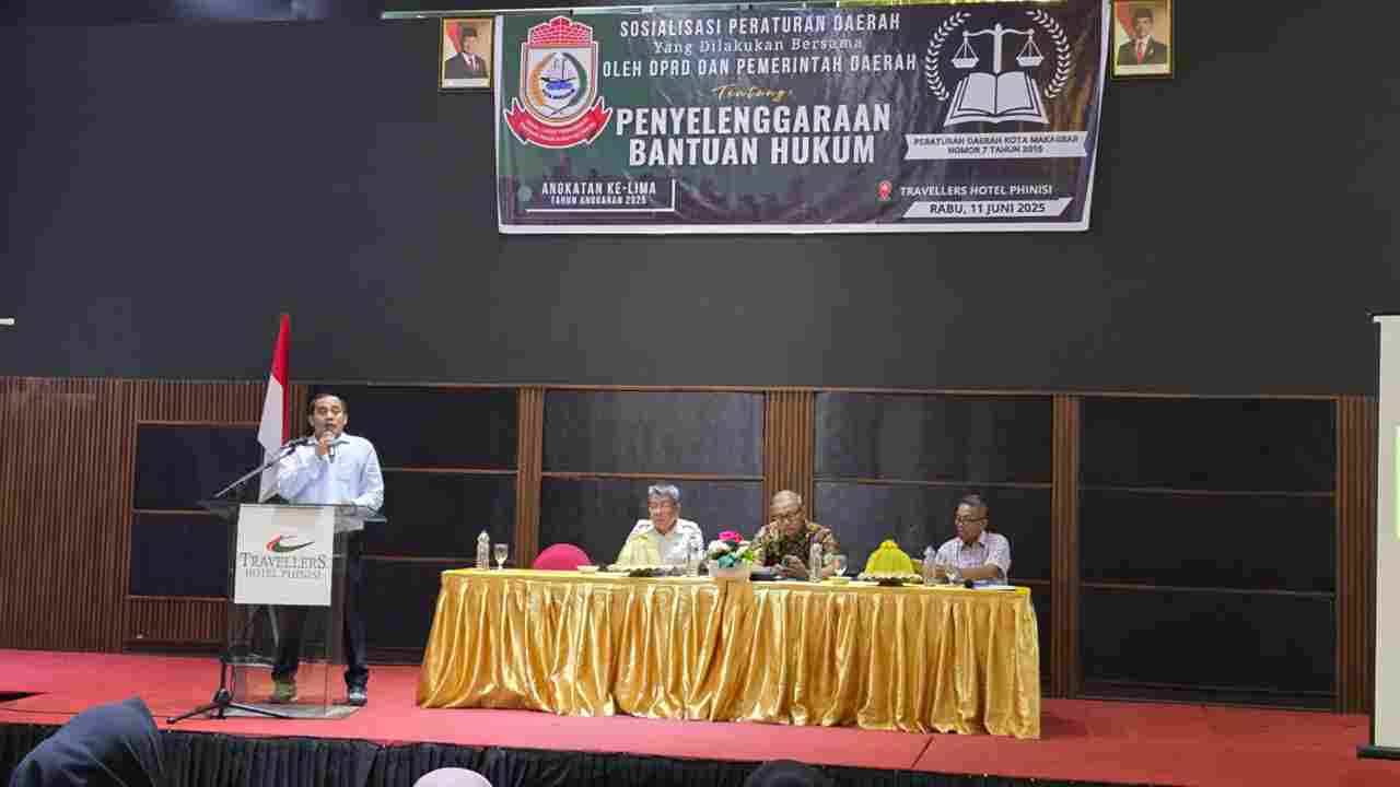 Pemerintah Kota Makassar resmi mensosialisasikan Peraturan Daerah (Perda) Kota Makassar Nomor 7 Tahun 2025 tentang Penyelenggaraan Bantuan Hukum, yang digelar pada Rabu, 11 Juni 2025 di Travellers Hotel Phinisi. Kegiatan ini menghadirkan tiga narasumber lintas lembaga: unsur DPRD, Kesbangpol, serta Lembaga Bantuan Hukum, dengan tujuan memberikan pemahaman mendalam kepada masyarakat mengenai hak atas bantuan hukum, khususnya bagi warga miskin dan kelompok rentan.
