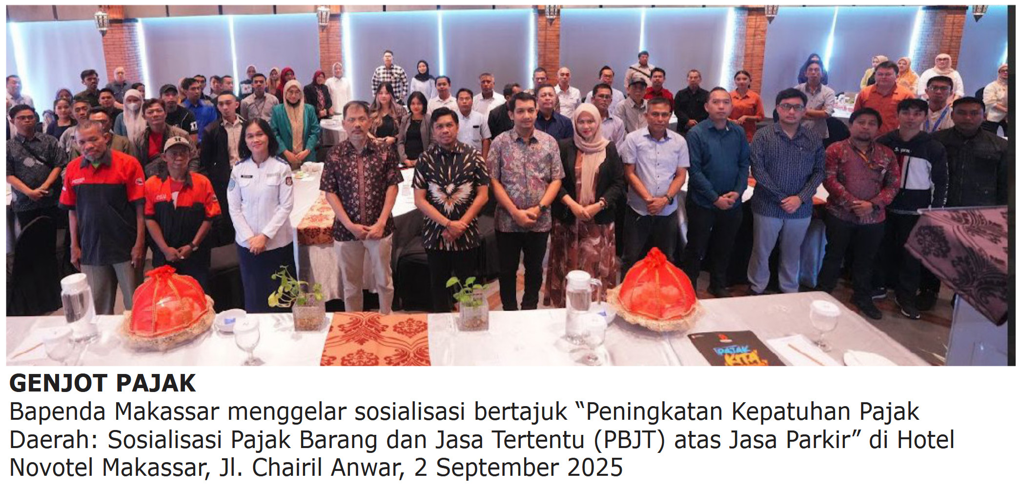 Kegiatan ini digelar di Hotel Novotel Makassar, Jalan Chairil Anwar, pada 2 September 2025. Acara tersebut menghadirkan sejumlah pihak penting, termasuk Perumda Parkir Makassar Raya, Dinas Perhubungan, serta perwakilan perusahaan pemilik lahan parkir di Kota Makassar.