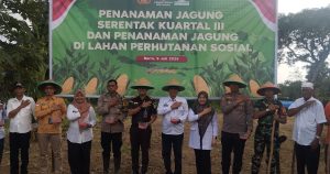 BARRU, WARTANA – Bupati Barru diwakili oleh Kepala Dinas Pertanian dan Ketahanan Pangan Kabupaten Barru, Ir. Ahmad menghadiri kegiatan Penanaman Jagung Serentak Kuartal III yang dilaksanakan di lahan Perhutanan Sosial Desa Lampoko Kecamatan Balusu.