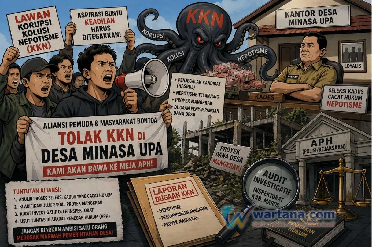 Maros, Wartana – Gabungan elemen pemuda dan masyarakat Kecamatan Bontoa mengancam akan melaporkan dugaan praktik Korupsi, Kolusi, dan Nepotisme (KKN) di Desa Minasa Upa ke Aparat Penegak Hukum (APH). Langkah ini diambil setelah aspirasi warga dinilai tidak mendapatkan respons yang memadai dari pemerintah desa.