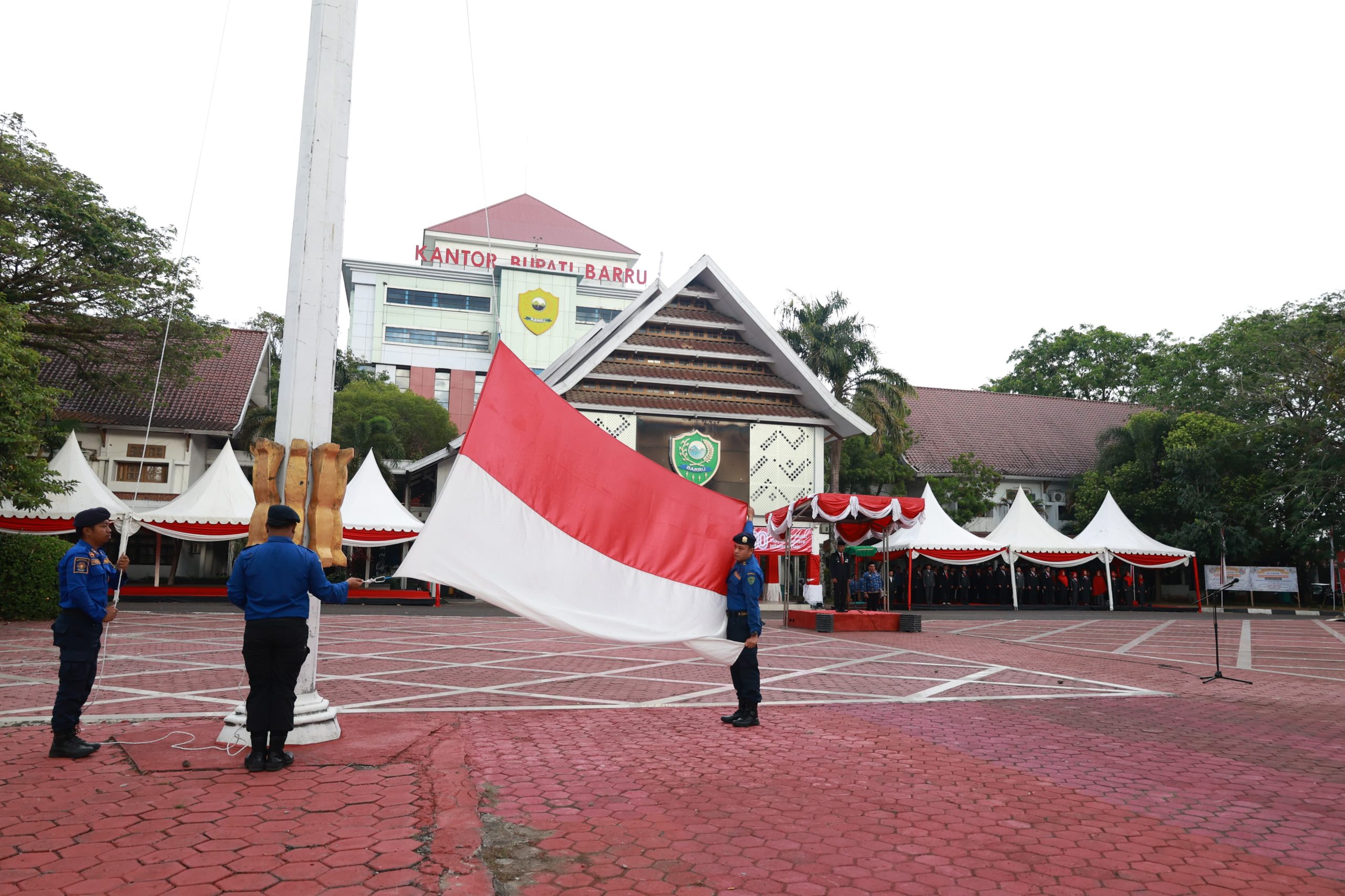 Bertindak sebagai Inspektur Upacara, Penjabat Sekretaris Daerah Kabupaten Barru, Abu Bakar, S.Sos., M.Si., memimpin jalannya upacara yang turut dihadiri para asisten Setda, staf ahli, para pimpinan Organisasi Perangkat Daerah (OPD), para kepala bagian, serta seluruh Aparatur Sipil Negara (ASN) lingkup Pemkab Barru.