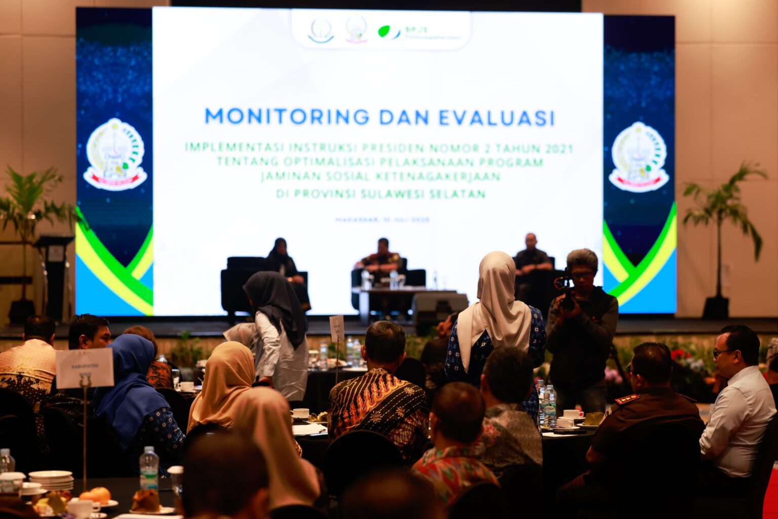 Bupati Barru bersama Pj. Sekda mengikuti kegiatan monitoring dan evaluasi pelaksanaan Inpres Jaminan Sosial Ketenagakerjaan.