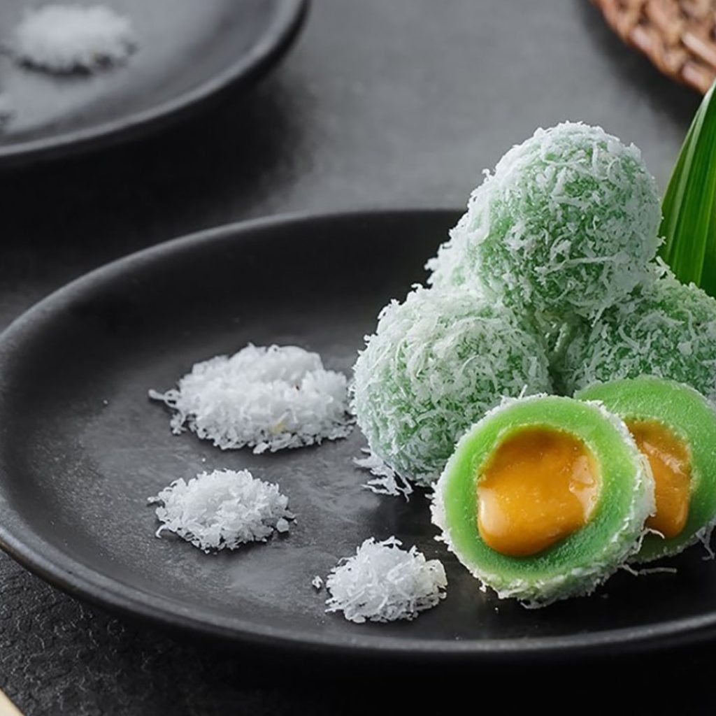 Klepon kenyal dengan isian gula merah yang lumer di mulut, jajanan pasar yang enak banget!